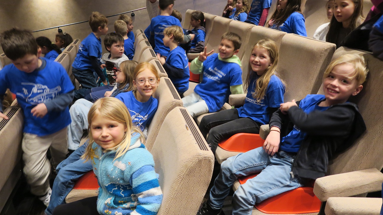 Am 28. Januar fuhren alle Schülerinnen und Schüler unserer Grundschule samt Starterklasse um 8.30 Uhr in 3 verschiedenen Bussen los nach Esslingen. Als wir nach einer guten Stunde dort ankamen, mussten wir zuerst noch ein Stück bis zum Theater laufen. Dort lief gerade noch die erste Vorstellung, deshalb mussten wir draußen warten.