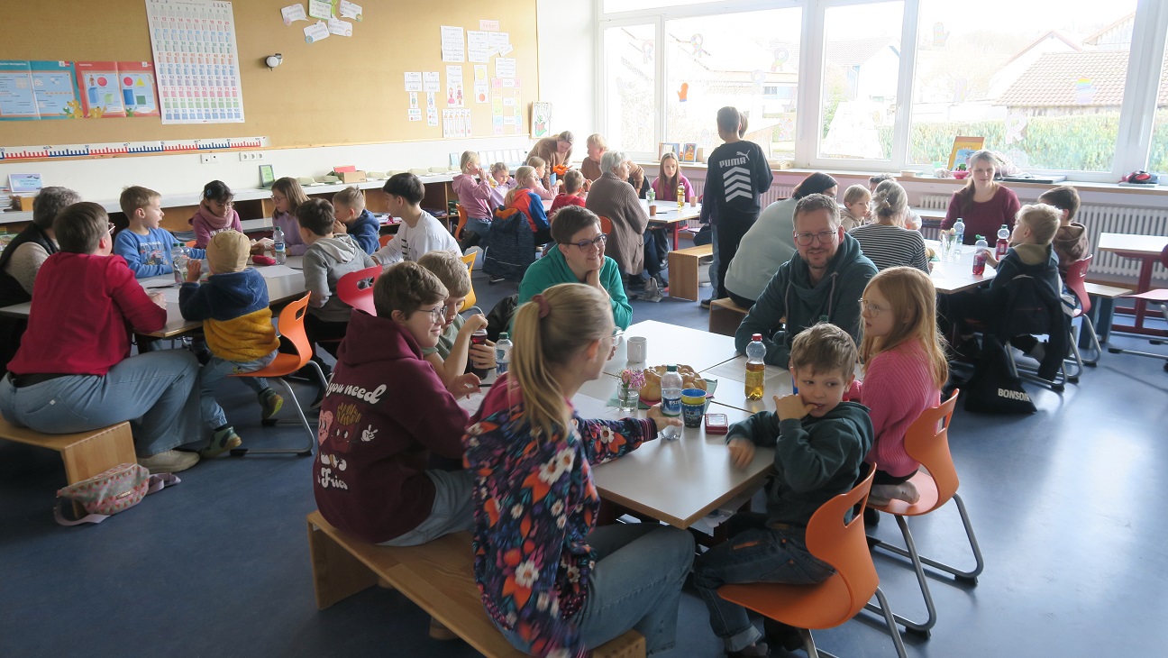 Es gab so lustige Spiele wie Abstreichen, große und kleine Hausnummer, der lange Entenschiss, der Wächter bläst vom Turm und s´nackede Luisle. Aus jedem Klassenzimmer hörte man lautes Gelächter und überall sah man fröhliche Gesichter, vor allem, wenn man etwas von der Mutschel gewonnen hatte! Zur Stärkung gab es Punsch, Saftschorle, Wasser und Kaffee. Zum Schluss konnte jedes Kind noch eine kleine Mutschel mit nach Hause nehmen.