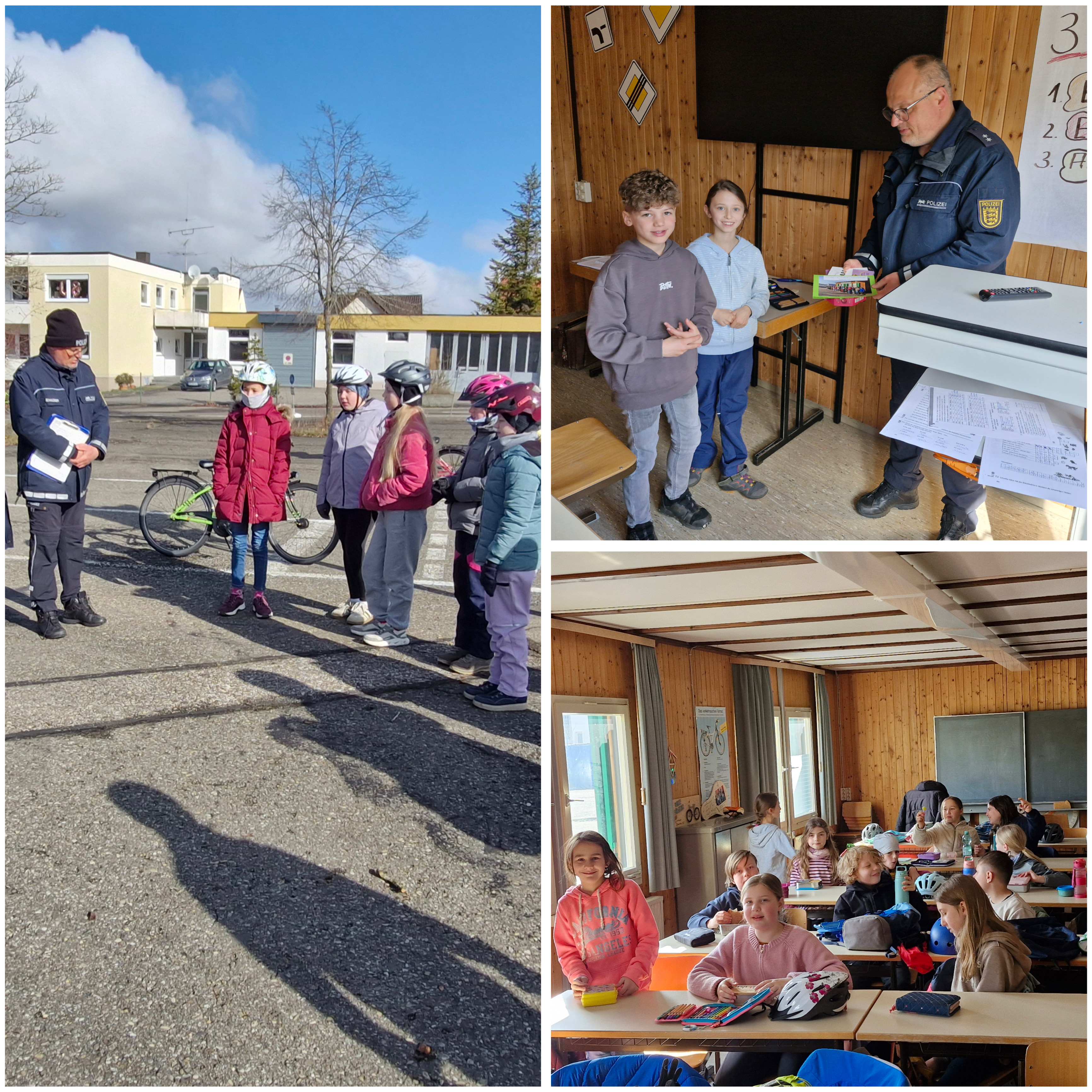 Am 27.3. war dann unser Prüfungstag. Wir waren alle sehr aufgeregt und manche konnten deshalb nicht mal richtig frühstücken. Wir Kleinengstinger waren gleich mit der Prüfung dran. In 2 Gruppen fuhren wir nacheinander ganz konzentriert unsere Runden. Als wir fertig waren, haben die Polizisten unsere Ergebnisse ausgewertet und sie uns auch gleich verkündet. Das war echt spannend und aufregend für uns! Und das Tollste – alle haben bestanden! Da war der Jubel riesig und die Erleichterung auch! Wir haben ein großes Lob von Herrn Heinzelmann und Herrn Schwörer bekommen und konnten fröhlich und glücklich nach Hause fahren.