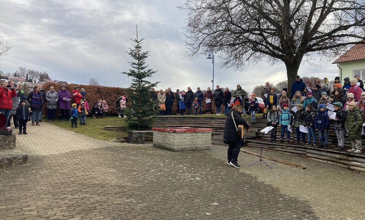 Am letzten Schultag vor den Weihnachtsferien besuchten alle Kinder klassenweise die ganz besondere Filzkrippe in der Blasiuskirche. Frau Bader erwartete die einzelnen Klassen und erklärte den Kindern die Entstehung der Krippe und die einzelnen Figuren. Gespannt verfolgten die Kinder die Erzählungen von Frau Bader zur Weihnachtsgeschichte. Auch ein gemeinsames Lied trug zur Einstimmung auf das bevorstehende Weihnachtsfest bei. Am Ende des Schultages versammelten sich alle Kinder in der Arena um sich im Rahmen einer kleinen Feier in die Weihnachtsferien zu verabschieden. Gemeinsam wurden Weihnachtslieder gesungen.